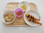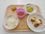 今日は、誕生日会のお祝いメニューでした✩エリンギ・しめじ・まいたけの3種類のきのこが入ったきのこご飯もでました!おやつは新メニュー『おたのしみパン!』ふんわりもちっとした米粉パンにレモン風味のサクッとしたクッキー生地をのせ、こんがり焼き上げました!おたのしみパンってなんだろう~?どんな形してるのかな??と、朝から楽しみにしてくれている声がきこえてきました。美味しい~!!の笑顔が嬉しい日々です✩2月誕生日のお友達おめでとう!!